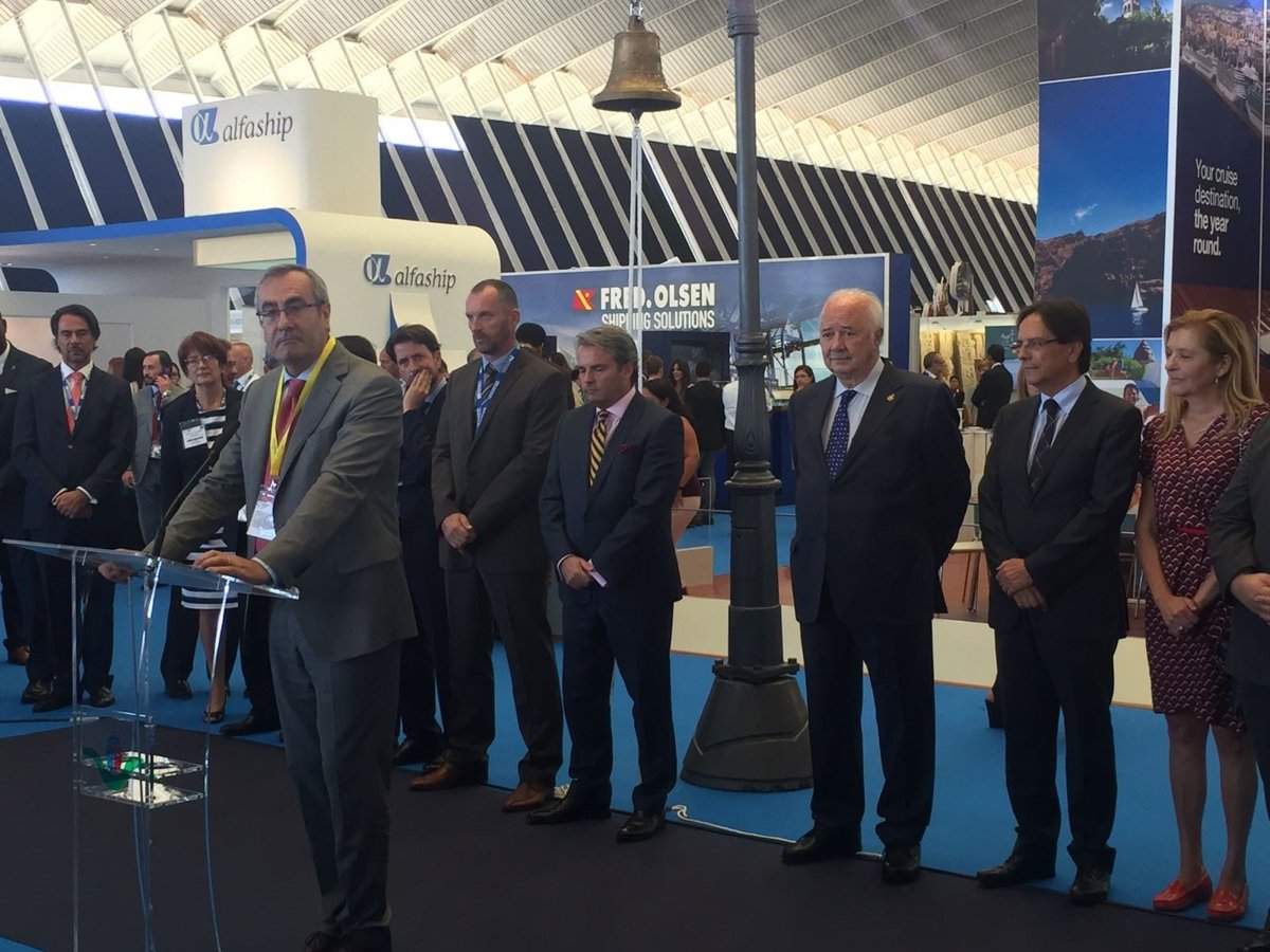 El presidente de Puertos del Estado, José Llorca, acompañado por el presidente del Cabildo de Tenerife, Carlos Alonso, el alcalde de Santa Cruz de Tenerife, José Manuel Bermúdez, y el director general de Seatrade, Adrew Williams, ha sido el encargado de inaugurar hoy en Tenerife la XI edición de la Feria-Congreso Seatrade Cruise Med.