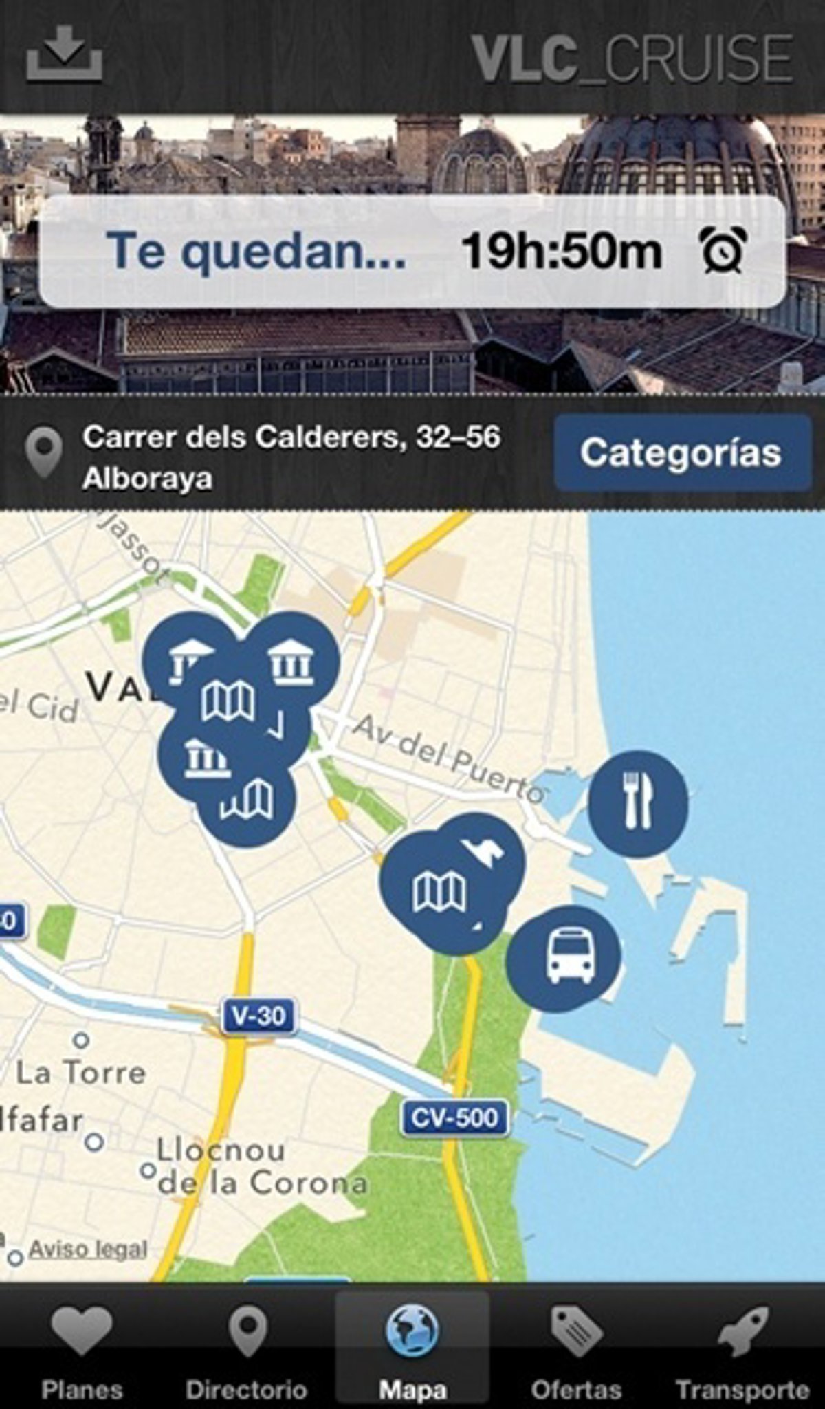 Una nueva aplicación móvil ofrece a los cruceristas que visiten Valencia distintas rutas para conocer la ciudad, con recomendaciones sobre qué hacer y qué ver durante su estancia y un indicador de tiempo para saber cuánto falta para que parta su barco.
