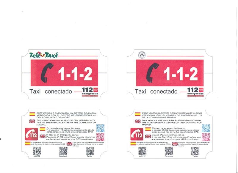 En su cara exterior, la pegatina avisa que el vehículo está conectado directamente con el Centro de Emergencias 112, a través del sistema de alerta y seguimiento de taxis de la Comunidad de Madrid.