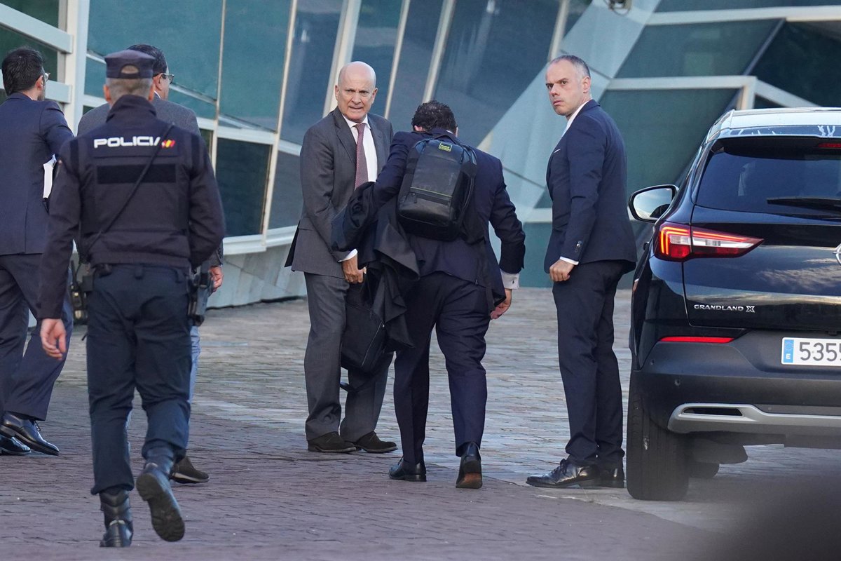 Archivo - El exdirector de Seguridad en la circulación de Adif, Andrés Cortabitarte (1i), a su llegada para declarar en la segunda jornada del juicio por el accidente ferroviario de Alvia, en la Cidade de la Cultura de Santiago de Compostela, a 6 de oct - Álvaro Ballesteros - Europa Press - Archivo