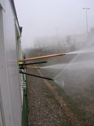 El control de la vegetación en líneas de alta velocidad en explotación se realiza con un tren herbicida, que abarca tanto la plataforma como cunetas y márgenes. Se utilizará en vías generales, ramales de conexión, vías de apartado y estaciones, a excepción de zonas de vía en placa, túneles y viaductos.
