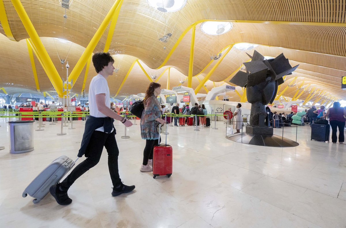 Archivo - Un grupo de personas caminan por uno de los pasillos de las instalaciones de la terminal T4 del aeropuerto de Adolfo Suárez-Madrid Barajas, a 28 de abril de 2023, en Madrid (España). - Alberto Ortega - Europa Press - Archivo