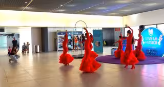 El Aeropuerto Internacional Región de Murcia (AIRM) acoge este martes, 5 de septiembre, una jornada de espectáculos en vivo, con la que Aena, sociedad concesionaria de las instalaciones, ha querido acercar la música, el baile y la cultura a los pasajeros de la terminal murciana a través de la campaña 'Siente el ritmo'.