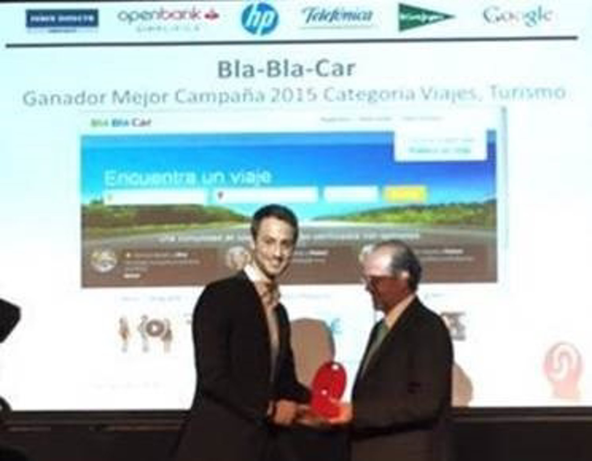 BlaBlaCar ha recibido el Premio de Internet en la categoría Publicidad de Turismo y Viajes por su campaña de comunicación en la web y en las redes sociales para lograr un posicionamiento dentro del consumo colaborativo.