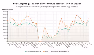 Por último, la larga distancia aumentó un 25,9% en el transporte por autobús y un 21,8% en el ferrocarril. Dentro de este último, Alta Velocidad creció un 31%.