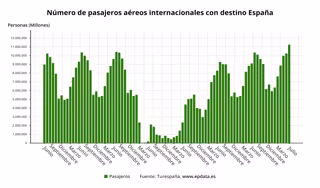 Evolución de la llegada de pasajeros por vía aérea con destino a España - EPDATA