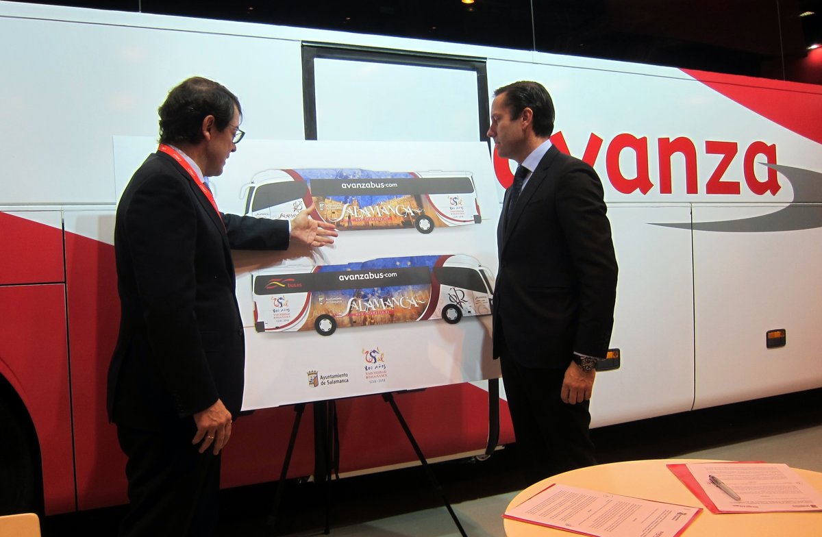 La empresa Grupo Avanza y el Ayuntamiento de Salamanca han firmado un convenio en Fitur que permitirá que los autobuses que cubren el trayecto entre Madrid y Salamanca luzcan la imagen de la Universidad de Salamanca (USAL), además de logos y mensajes sobre la celebración de su octavo centenario.