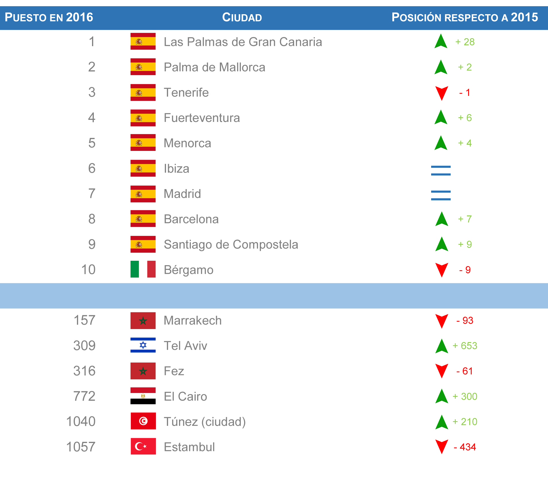 De hecho, en las clasificaciones de los cuatro países de los destinos favoritos, se observa que las ciudades turcas, marroquíes y tunecinas cosechan resultados muy discretos en comparación con las españolas.
