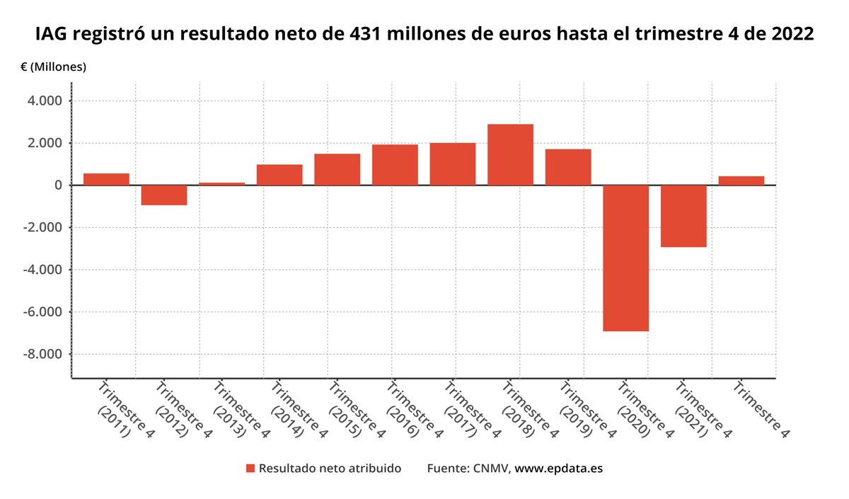 IAG vuelve a 'números negros' en 2022 con un beneficio de 431 millones - EPDATA