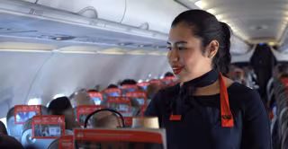 Una tripulante de cabina de Iberia Express ofreciendo el servicio a bordo. - IBERIA EXPRESS