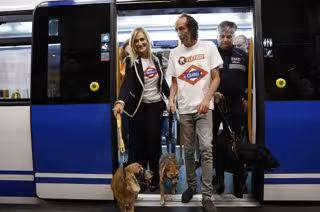Cifuentes y Nacho Paunero salen de un vagón de Metro con un perro - COMUNIDAD DE MADRID