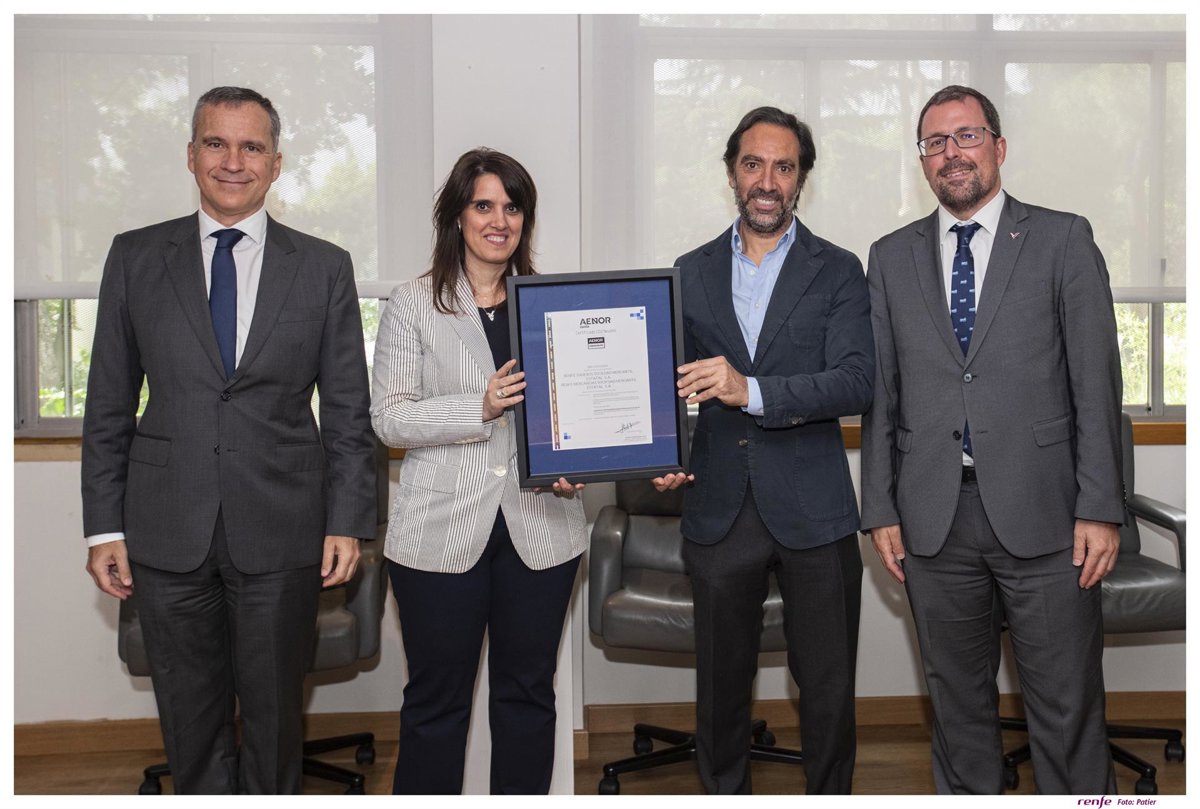 Rafael García Meiro (AENOR), Sonia Araujo (Renfe Viajeros), Joaquín del Moral (Renfe Mercancías) y Raül Blanco (Renfe) - RENFE
