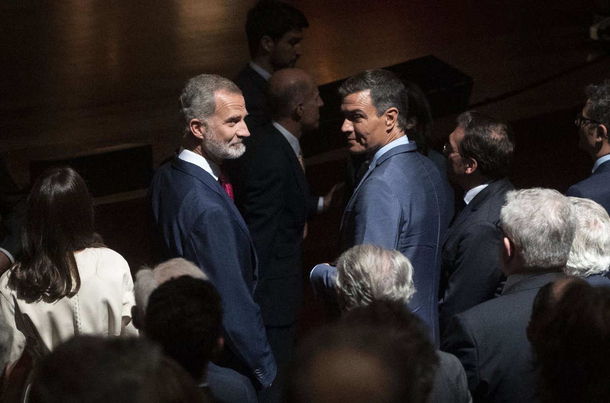 Archivo - El Rey Felipe VI y el presidente del Gobierno, Pedro Sánchez, a su llegada al acto inaugural del 'Año Picasso', conmemorativo del 50 aniversario de su muerte, en el Museo Nacional Centro de Arte Reina Sofía - Alberto Ortega - Europa Press - Archivo