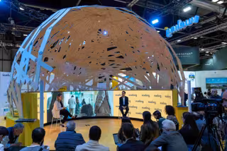 El estand también cuenta con iluminación y pantallas led de bajo gasto para optimizar el consumo energético y, con la doble curvatura del casquete esférico, "optimiza el uso de madera".