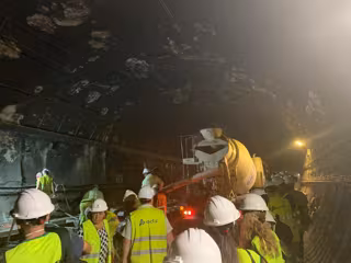 Para el hormigonado destinado a la ejecución de la vía en placa se verterán unos 23.000 metros cúbicos de hormigón, con picos previstos de trabajo en los que entrarán en el túnel hasta 150 hormigoneras diarias.