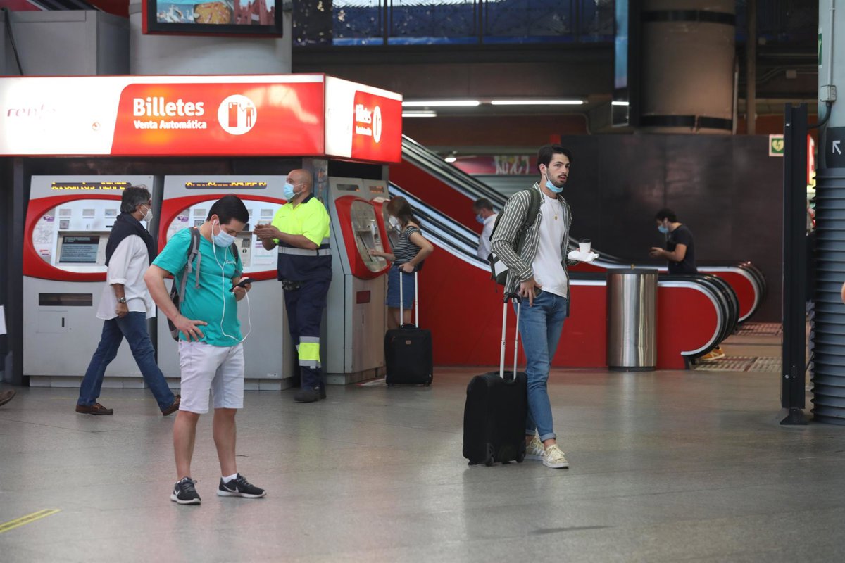 Varias personas sacan billetes en la estación de Renfe Madrid Puerta de Atocha en el primer día laborable tras el estado de alarma, en Madrid (España), a 22 de junio de 2020. - Marta Fernández Jara - Europa Press - Archivo