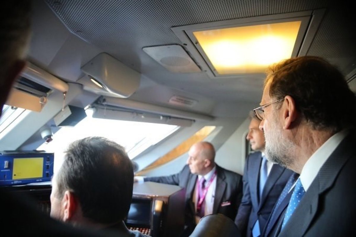 El tren, llamado 'Juan Sebastián Elcano', ha partido de la estación de Atocha a las 9.25 con el presidente del Gobierno y el ministro de Fomento, Íñigo de la Serna, a bordo.