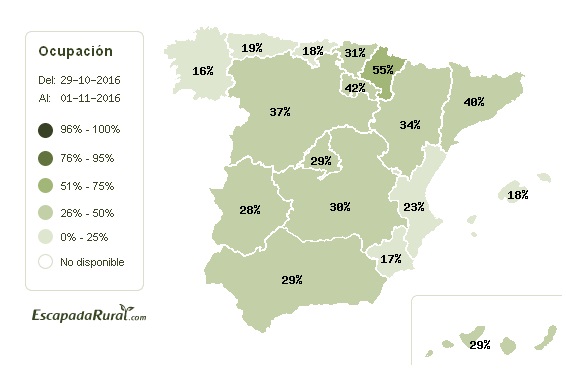 En 2015 se cerró el festivo con una ocupación media del 33%, según este portal especializado en casas y alojamientos rurales, que aglutina el 90% de la oferta en España.