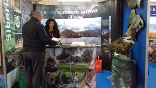 Representando a la Diputación de Badajoz se encuentra la técnico de turismo Carmen Álvarez con un stand donde se promocionan los valores turísticos y naturales de la provincia, destacando la ornitología y el apoyo a La Siberia como Reserva de la Biosfera.