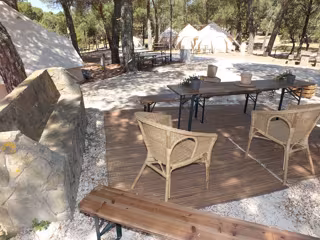 También se encuentran 41 parcelas para montar la tienda propia (sola o junto al vehículo y con toma eléctrica) y otra de acampada totalmente libre con 24 espacios, así como un área con enganche eléctrico para 31 caravanas, autocaravanas y vehículos camper.
