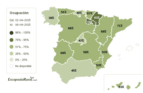 Cataluña (71%), Extremadura (68%) y Aragón (68%) destacan también entre las comunidades que presentan mayor nivel de ocupación, frente a Galicia, en figura en última posición, con una ocupación del 38%.