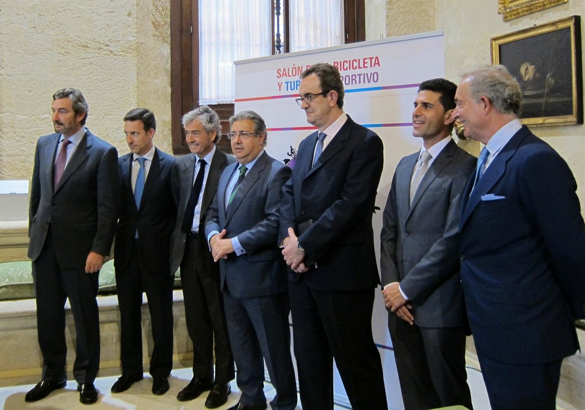 El alcalde de Sevilla, Juan Ignacio Zoido (PP), junto al gerente del Palacio de Exposiciones y Congresos (Fibes), Gaspar Sáez, y el presidente de Konecta, José María Pacheco, como uno de los patrocinadores, han presentado este lunes el primer Salón de la Bicicleta y Turismo Deportivo, 'Fiesta Bike Andalucía', que se desarrollará en Fibes entre los días 24 y 26 de mayo y que cuenta con unas previsiones de hasta 20.000 visitantes.