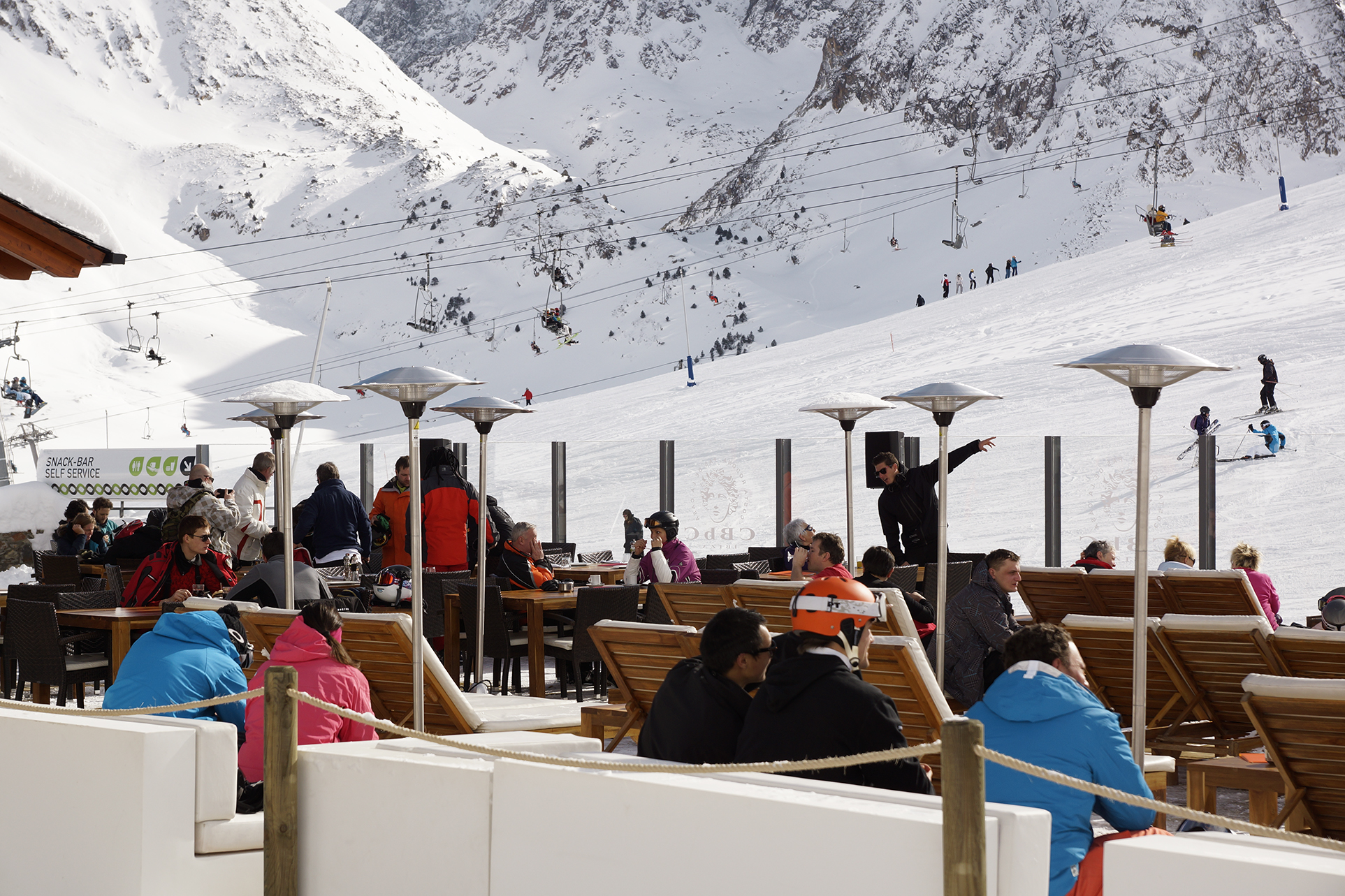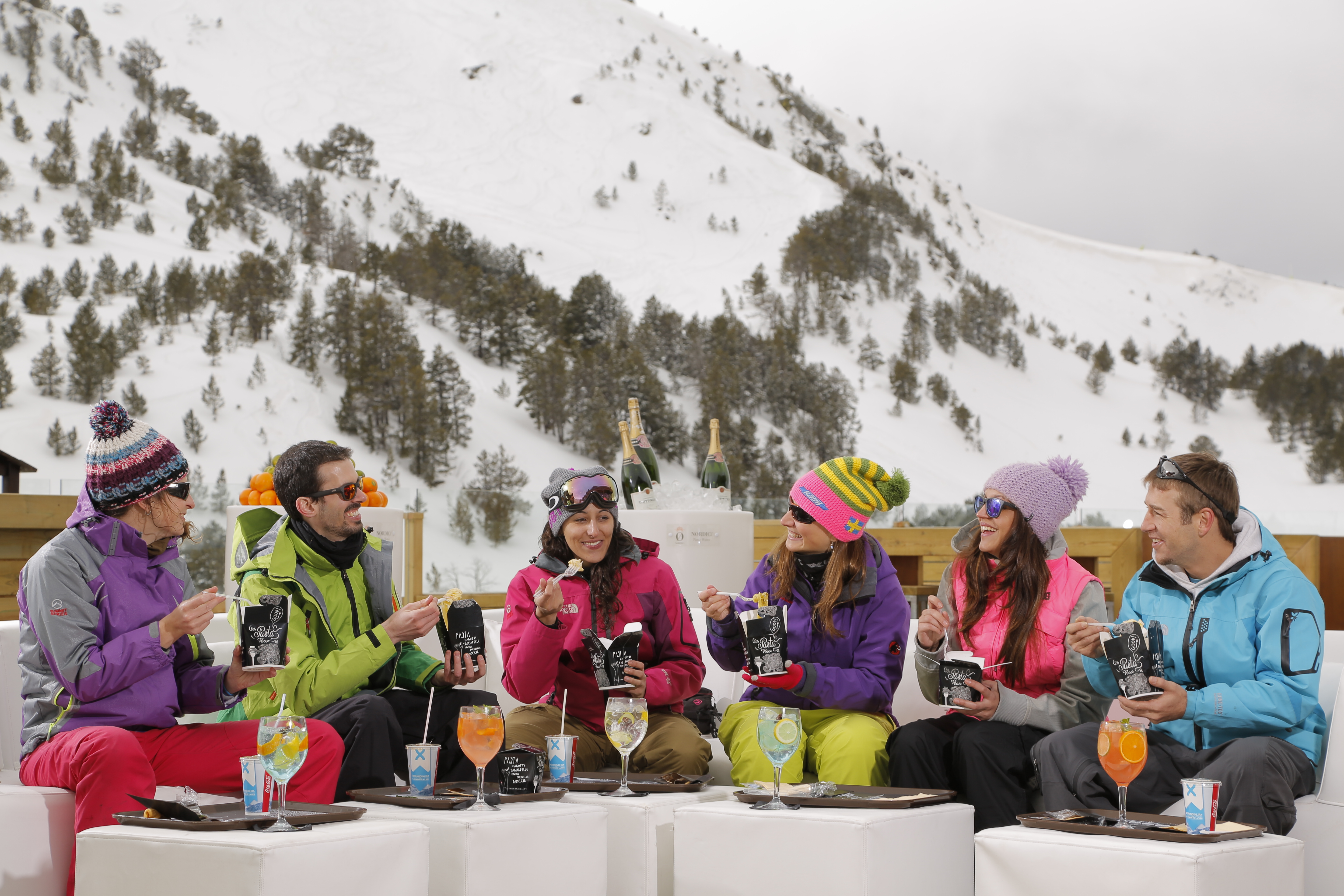 Grandvalira cuenta con terrazas repartidas por toda la instalación. Cala Bassa Costa Rodona, situada en el sector de Pas de la Casa, es un snow lounge que fusiona el entorno montañoso con el ambiente de las playas ibicencas donde se puede disfrutar de un cóctel.
