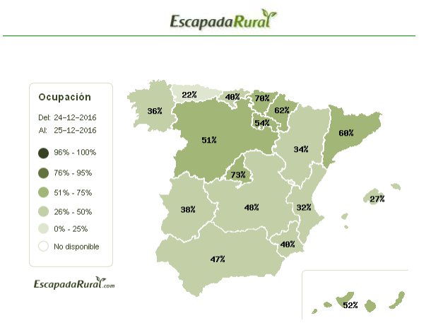 Las cifras de ocupación en turismo rural en todo el país alcanzan ya el 47% para las fiestas de Navidad, lo que supone siete puntos más con respecto a 2015 y diez más frente al año anterior, según los datos recabados por Escapadarural.com, portal especializado que reúne al 95% de la oferta nacional de este tipo de alojamientos.