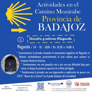 El proyecto continuará su andadura el próximo sábado, 10 de octubre, con la actividad 'Descubre y Saborea Magacela', donde se realizarán visitas al monumento megalítico de la población, al dolmen, y a uno de sus hornos tradicionales, y a continuación, se visitará el casco urbano para conocer su Conjunto Histórico Artístico.