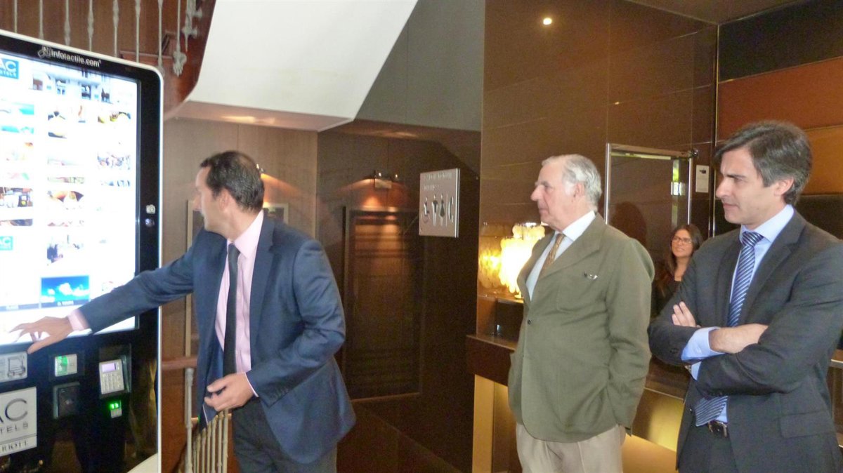 Esta acción publicitaria ha sido presentada este martes por el presidente de la Ruta del Vino Rías Baixas, Juan Gil de Araujo y el gerente de Infotactile Rías Baixas, Víctor Sarmiento, en el hotel AC Palacio Universal, uno de los participantes junto a los hoteles Bahía de Vigo, Ciudad de Vigo, Axis, Zenit Vigo y Trip Los Galones.