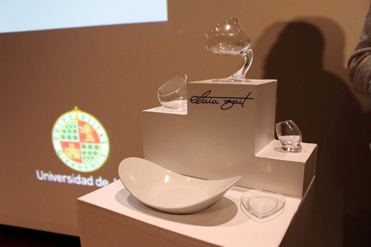 La Universidad de Jaén y Elaia Zait presentaron en octubre del año pasado en el Museo Nacional Centro de Arte Reina Sofía una colección de artículos de menaje dirigidos al consumidor, compuesta por un vaso de cata con tapa, diseñado especialmente para productos gourmet; una copa con pie, que facilita el calentamiento del aceite con la mano; un plato exclusivo y un vaso pequeño para la degustación en frío y con la cantidad adecuada.