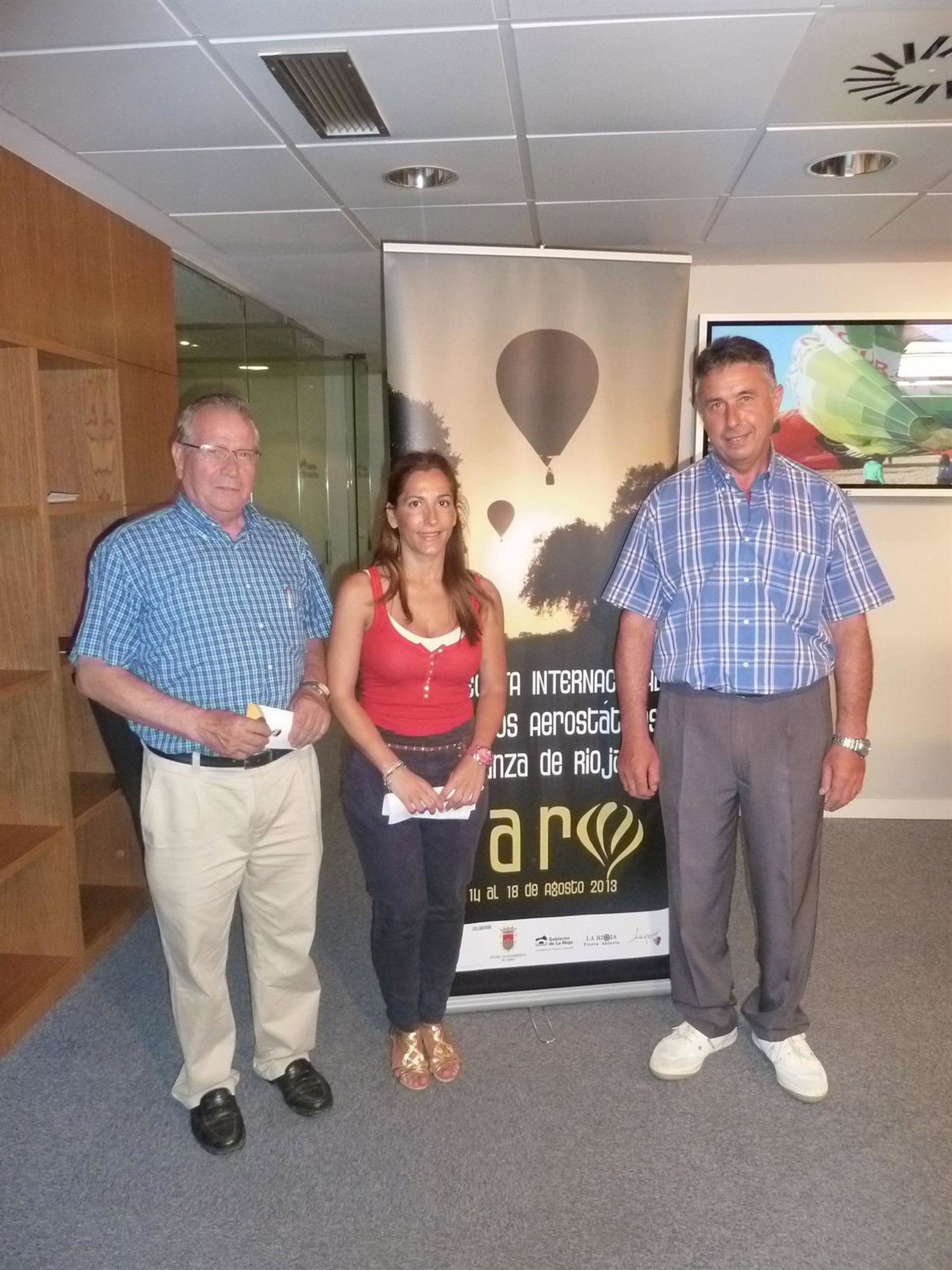 La directora general de Turismo, Mónica Figuerola, acompañada de Óscar Ayala, presidente del Club Riojano de Aerostación, ha presentado esta mañana la XIII edición de la Regata Internacional de Globos Aerostáticos 'Crianza de Rioja', que se celebrará en Haro del 13 al 18 de agosto.
