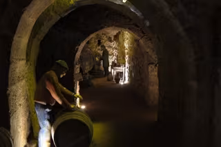 Más de siete kilómetros de recorrido de galerías, construidas entre 10 y 14 metros de profundidad, en las que se dan las condiciones idóneas de temperatura (entre 9 y 11 grados) y humedad para la conservación y elaboración de vino. Los túneles conectan unas bodegas con otras y tienen su origen en la economía del pueblo.