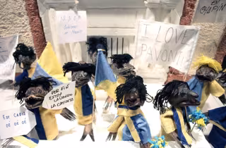 Messi, Cristiano Ronaldo, o la Duquesa de Alba. Los tenderos y propietarios de puestos en los distintos mercados de la ciudad de Cádiz disfrazan su mercancía: cerdos, pollos, conejos, frutas o verduras de personajes famosos para formar escenas cómicas sobre temas de actualidad local y nacional con un fuerte componente crítico.