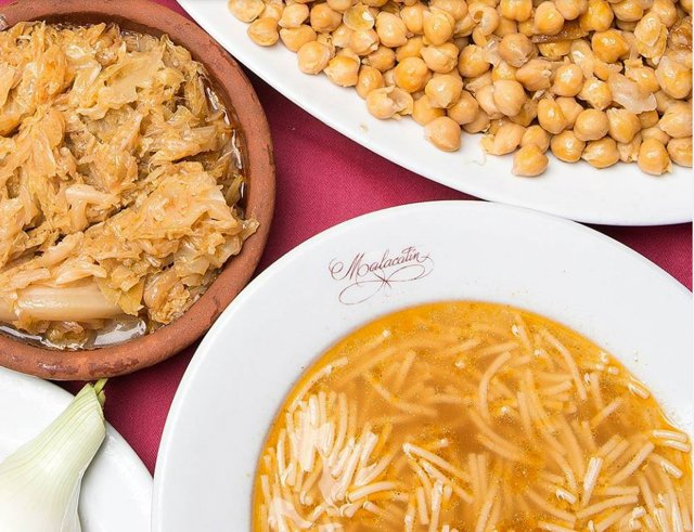 Los amantes del cocido madrileño tienen una cita en Malacatín. A fuego lento y sin prisa, así preparan desde hace más de 100 años el cocido en el local, donde los clientes pueden disfrutar sin prisa de uno de los platos más emblemáticos de Madrid y donde no falta su sopa de fideos, sus garbanzos, su piparra al vinagre, repollo, patata cocida, la pringada del tocino de veta, el chorizo de León o la morcilla asturiana, la gallina, morcillos de ternera y manitas de cerdo.