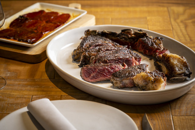 Para aquellos que se desplacen hacia el norte y pasen por Burgos, toca parada en Abadesa, situado en el kilómetro 235 de la A-I (sentido norte) y 234 (sentido sur), es el asador de carretera que hay que descubrir este año. María Rodríguez y Guillermo Martínez de Marigorta, mejor maestro parrillero de 2024, comandan este espacio en el que las mejores carnes, verduras de temporada y pescados mariscos pasan por la brasa. La carne se erige como protagonista con una cuidada carta donde hay un amplio abanico de razas -Frisona, Simmental- que llegan de Centroeuropa, pero por su brasa también pasan pescados y mariscos (gamba blanca, almeja de carril, bacalao o ventresca) y verduras como sus alcachofas cocidas a baja temperatura y tostadas a la brasa, guisante lágrima, puerros con espuma de Idiazábal o cogollos de Tudela tostados con pimientos del Piquillo y anchoa.
