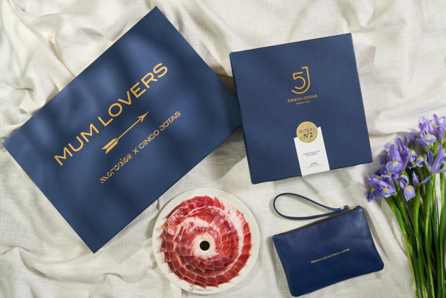 El universo gastro también se cruza con la moda para las madres más 'fashionistas' en colaboraciones como la de Cinco Jotas y Mercules, que presentan el pack Ritual nº2, que incluye dos sobres de jamón Cinco Jotas de 80 gramos acompañados de un exclusivo zipper de piel en tono azul noche, con grabado especial 'Mum Lovers', convirtiendo el regalo en un objeto de deseo.