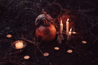 Calabaza y velas con motivos del día de Halloween - UNSPLASH