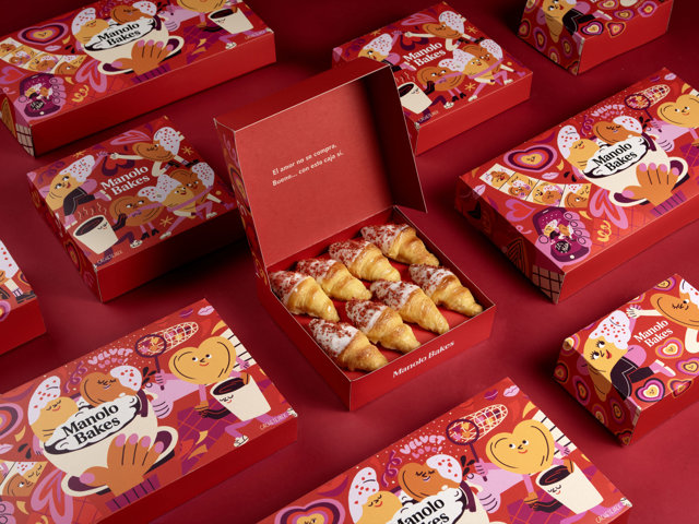 Mientras que Manolo Bakes propone celebrar San Valentín con su nueva propuesta, la Red Velvet, que rescata la mítica receta con un intenso sabor a vainilla y aterciopelado bizcocho red velvet disponible en los icónicos Manolitos y Palmitas, que además estrena un nuevo formato, los 'cake pops'. Además, este regalo para el día de los enamorados llega en packaging ilustrado por Cachete Jack, donde el color rojo, el humor y los pequeños gestos cotidianos construyen un universo romántico para este romántico día.