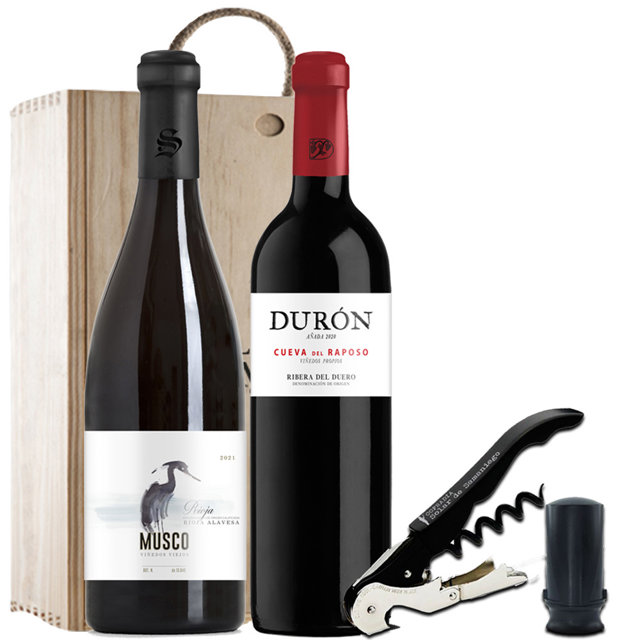 Solar de Samaniego recomienda un regalo inolvidable que une vino, historia y un recorrido por los sentidos con un paquete que incluye todo lo necesario para disfrutar de un buen vino y de una experiencia enoturística exclusiva. Así, el pack cuenta con dos vinos con carácter propio como son Musco Viñedos Viejos 2021 D.O.Ca. Rioja y Cueva del Raposo 2020 D.O. Ribera del Duero, incluye además un sacacorchos y una bomba de vacío, para que el disfrute sea inmediato y completo. También incluye una visita guiada para dos personas a la bodega y sus viñedos.