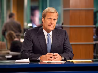 Jeff Daniels interpreta al malhumorado presentador de televisión Will McAvoy, que debe presentar el telediario sin obstáculos corporativos ni comerciales. Daniels ha dejado claro que no tiene tiempo para las críticas.