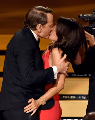Cuando Louis-Dreyfus subía al escenario a recoger su premio, Cranston se levanto de su asiento y le robo un apasionado beso. Cuando la actriz comenzó su discurso, se encontraba literalmente sin palabras, mientras el actor que dio vida a Walter white se limpiaba la comisura de los labios.
