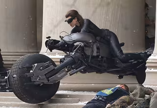 Mientras la policía de Gotham se enfrenta a los presos fugados de Arkham a las puertas del Ayuntamiento Selina Kyle, la mujer que se transforma en Catwoman, sale del edificio montada en la moto de Batman. Esta fue una de las escenas que se filmó el pasado fin de semana en Pittsburgh. Y salió muy cara.