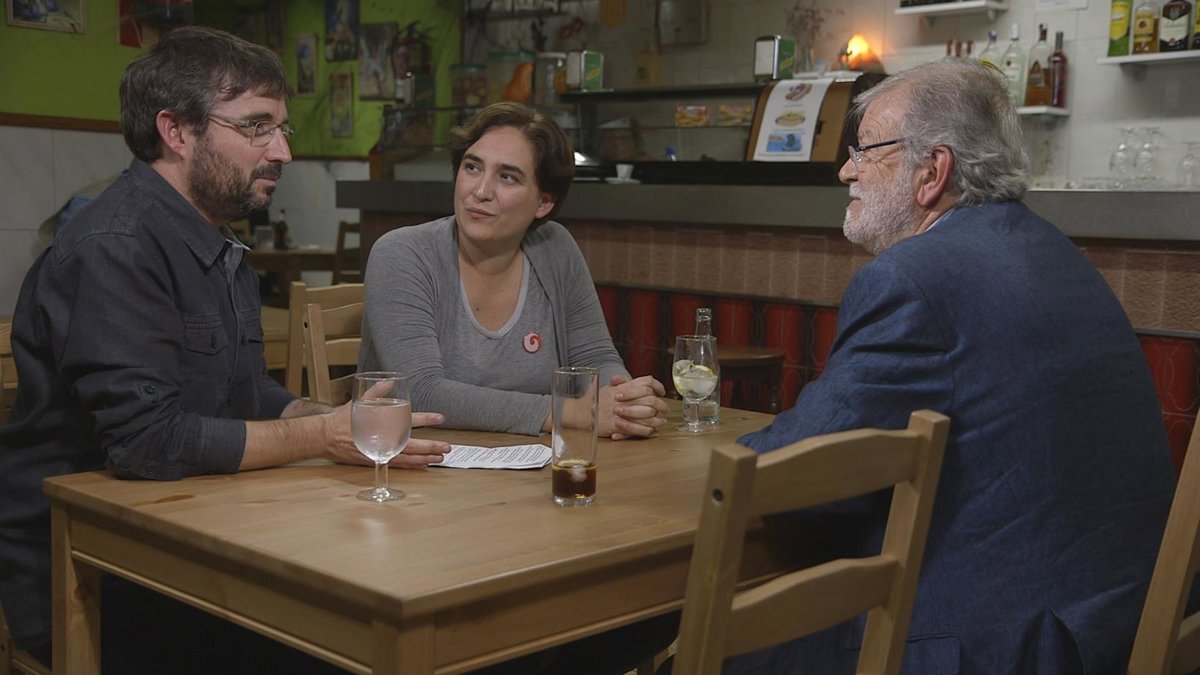 Salvados se fija en Guanyem Barcelona, la formación liderada por Ada Colau como ejemplo de estos movimientos. El programa asiste a una asamblea de Guanyem en Barcelona y sienta a su cabeza visible, Ada Colau, junto al líder histórico del PSOE Juan Carlos Rodríguez Ibarra, presidente de Extremadura durante 24 años.