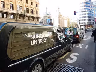En una "reflexión general sobre la brevedad de la vida", según la cadena, un total de diez coches fúnebres han ido desfilando, entre "gran expectación y caras de sorpresa", por Gran Vía, Cibeles, Ciudad Universitaria o Plaza de Castillas, entre otros puntos de la capital.