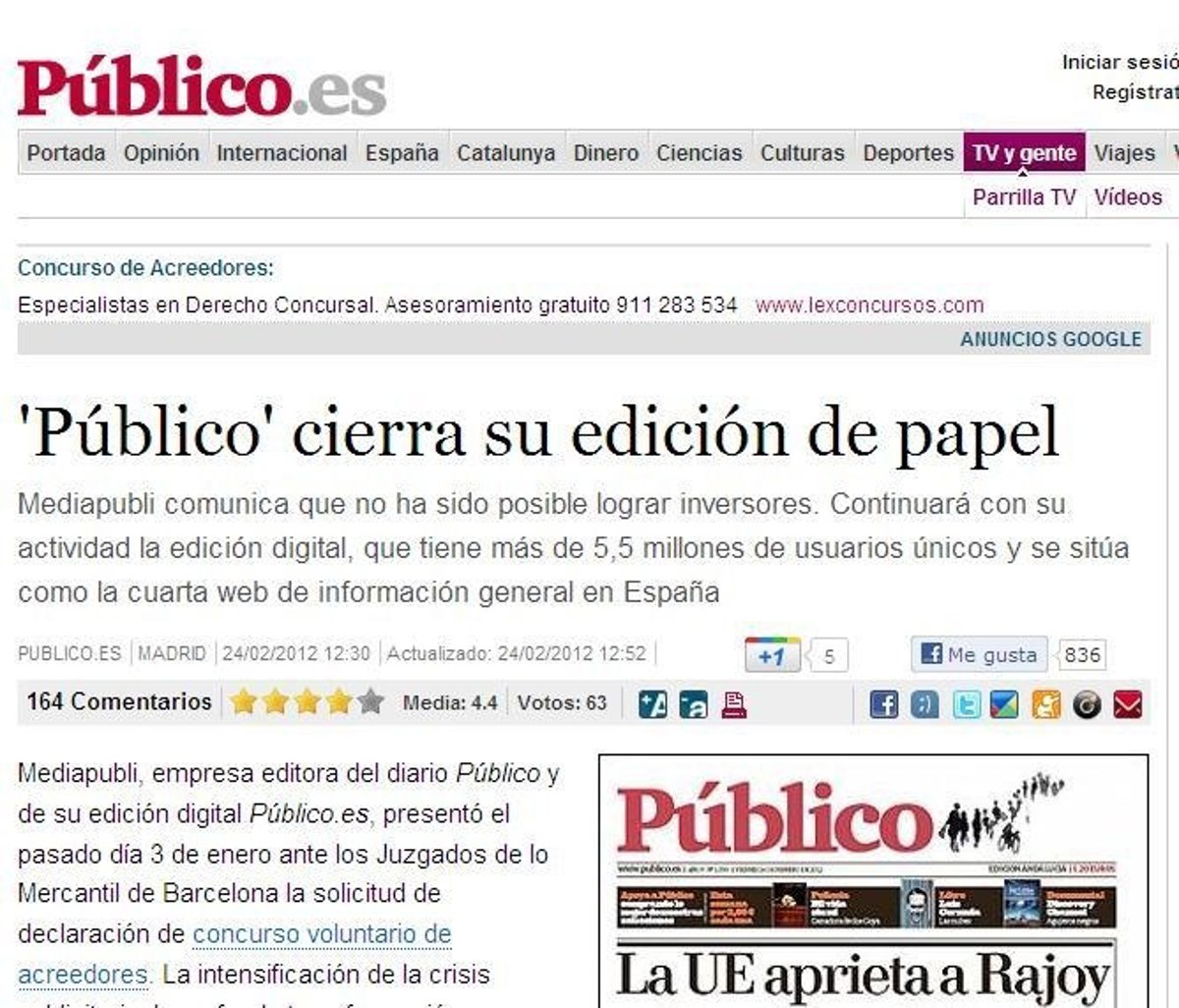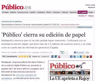 Precisamente, la editora del diario, Mediapubli, ha asegurado que la cabecera en Internet continuará con su actividad. 'Público.es' tiene más de 5,5 millones de usuarios únicos, que la sitúan como la cuarta web de información general en España, según los datos de OJD.