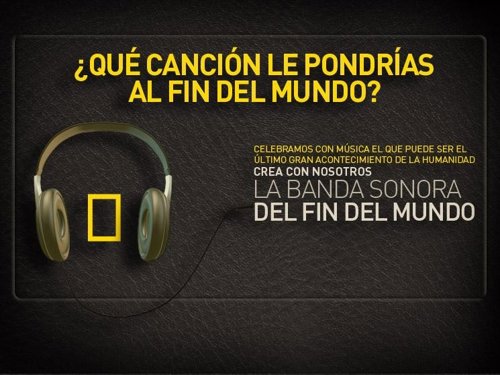 De este modo, National Geographic ha habilitado un espacio en su web para que todos los interesados puedan proponer y elegir su canción para el Apocalipsis. Cada semana de diciembre se publicará un ranking con las melodías más solicitadas por los usuarios hasta llegar a la selección final de la canción escogida, que se dará a conocer el 20 de diciembre.