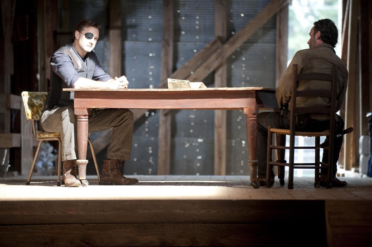 En la primera entrega de la noche, 'La flecha en el arco de la puerta', asistiremos a la reunión entre Rick y el Gobernador, aunque los dos tienen muy diferentes expectativas del encuentro. ¿Conseguirá Rick el cese de las hostilidades?