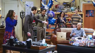 Sheldon disfruta de su fiesta. Las palabras de Leonard le emocionan, pues le considera más que un amigo, un hermano. Cuando Stuart intenta también dedicarle unas palabras, Amy interrumpe con una llamada de Skype. Stephen Hawking le desea feliz cumpleaños y todos le cantan el cumpleaños feliz.
