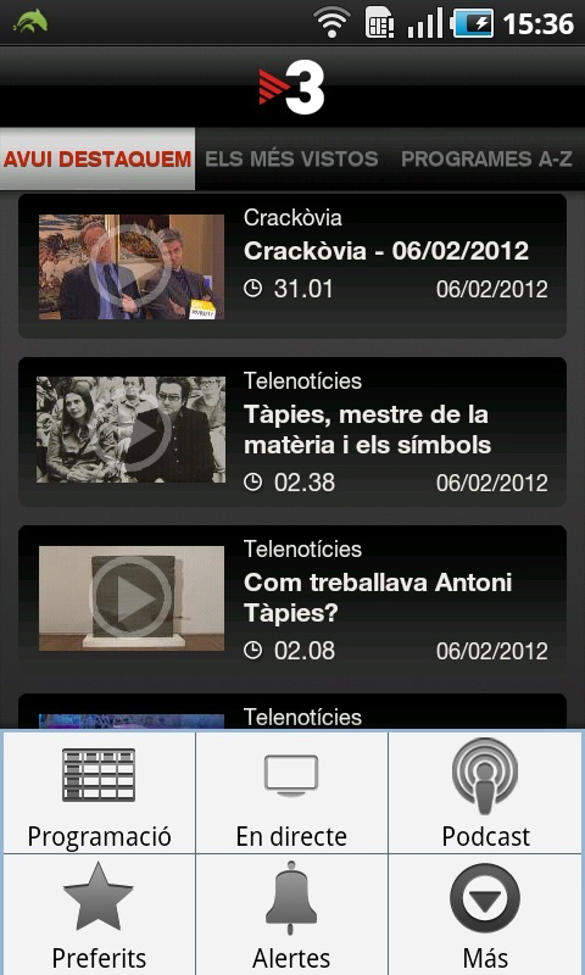 La aplicación, lanzada con motivo del Mobile World Congress (MWC) que se celebra en Barcelona la próxima semana, permite visualizar todos los videos de TV3alacarta y las emisiones en directo de los canales 3/24 y TV3cat.